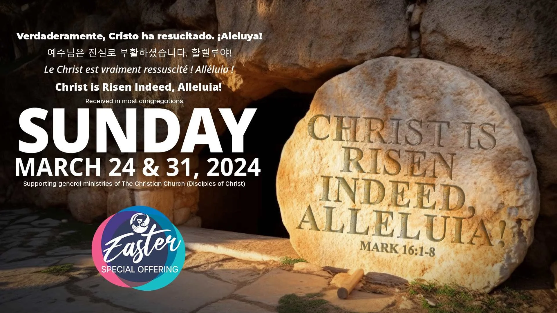 The Easter Offering, received by Central Christian Church on March 24 & 31, 2024, supports several of the general ministries of the Christian Church. Your gift supports college students in leadership development programs, global mission partners, health and social service ministries, the formation of new congregations, support for pastors and chaplains, and so much more.